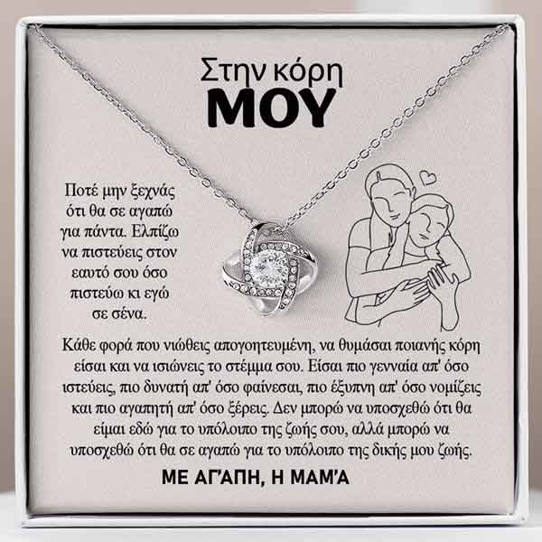 Περικλείεται με ένα μυστικό μήνυμα, το κολιέ εκφράζει βαθιά αγάπη και στοργή – το τέλειο δώρο για γενέθλια, διακοπές ή απλώς για να της υπενθυμίσει πόσο ξεχωριστή είναι.