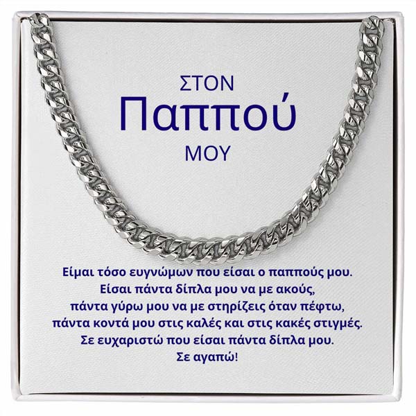 Είμαι τόσο ευγνώμων που είσαι ο παππούς μου. Είσαι πάντα δίπλα μου να με ακούς, πάντα γύρω μου να με στηρίζεις όταν πέφτω, πάντα κοντά μου στις καλές και στις κακές στιγμές. Σε ευχαριστώ που είσαι πάντα δίπλα μου.
