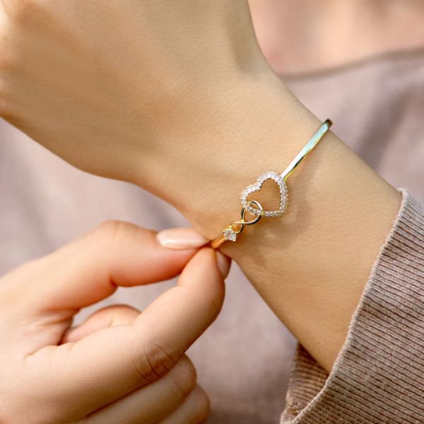 Το βραχιόλι συνδυάζει ένα σύμβολο απείρου με ένα μοτίβο καρδιάς, που αντιπροσωπεύει την αιώνια αγάπη και την αχώριστη σύνδεση.