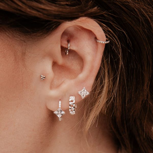 Το σκουλαρίκι Nadiva είναι ένα από τα βασικά κομμάτια που ταιριάζει σε μια μεγάλη ποικιλία στυλ και συνδυασμών σκουλαρικιών. Σας δίνει πολλές επιλογές φθοράς είτε στο κάτω μέρος είτε στην άνω άκρη του αυτιού σας. Το σκουλαρίκι διατίθεται ως ενιαίο κομμάτι και είναι κατάλληλο για να συνδυαστεί με όλα τα άλλα σκουλαρίκια.