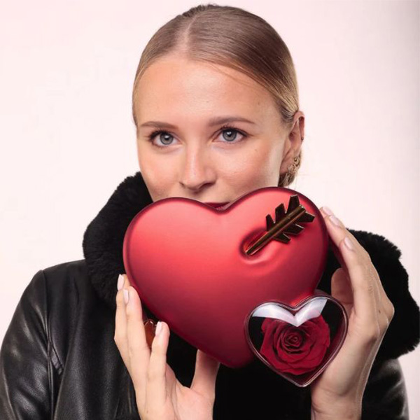 Ένα κουτί κοσμημάτων σε σχήμα καρδιάς με ένα αληθινό διατηρημένο τριαντάφυλλο, που συμβολίζει την αιώνια αγάπη. 💎
